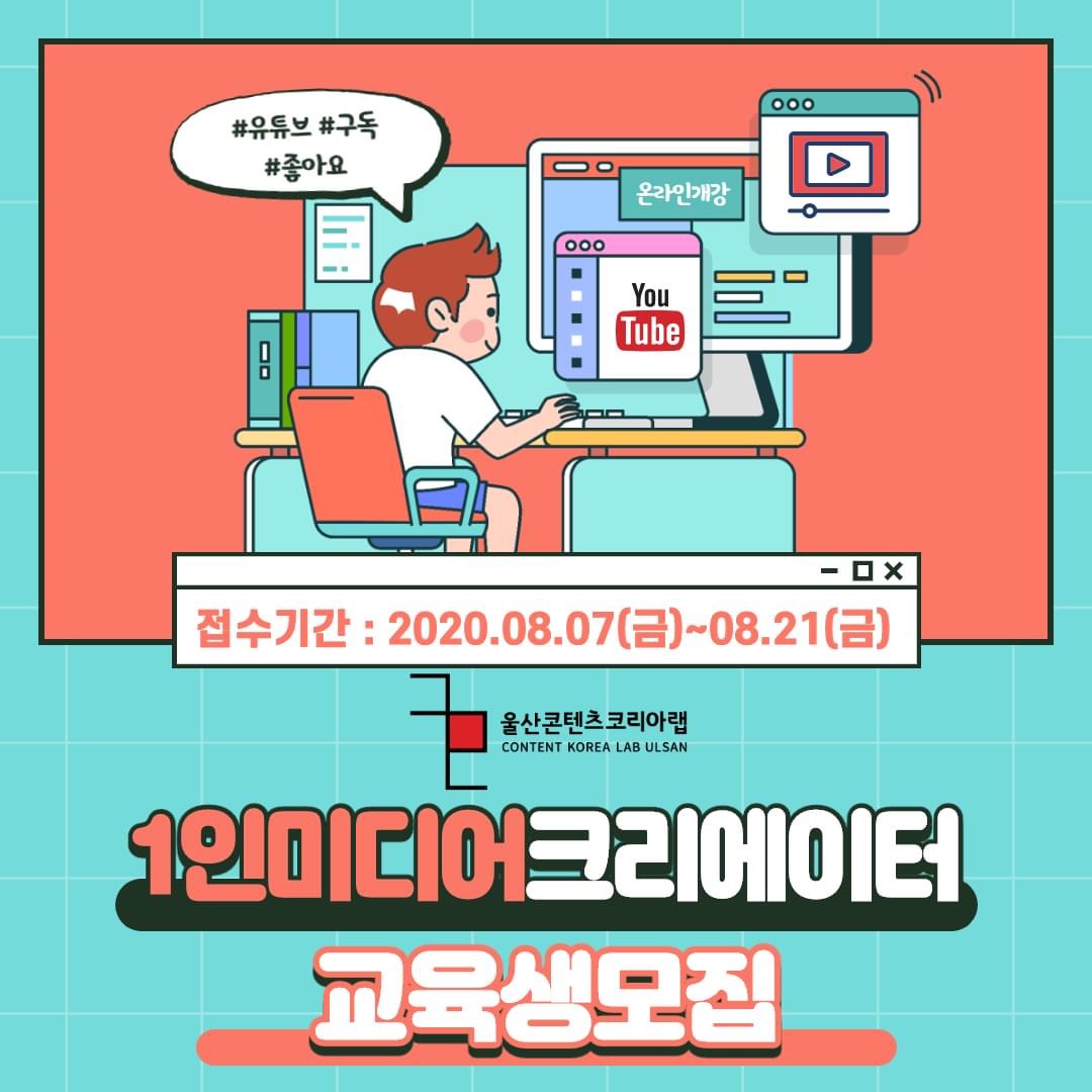 울산에서 유튜버가 될 수 있는 방법!!!!!!! 울산콘텐츠코리아랩 1인미디어 크리에이터 교육 신청 후 수강하면 나도 유튜버🥰