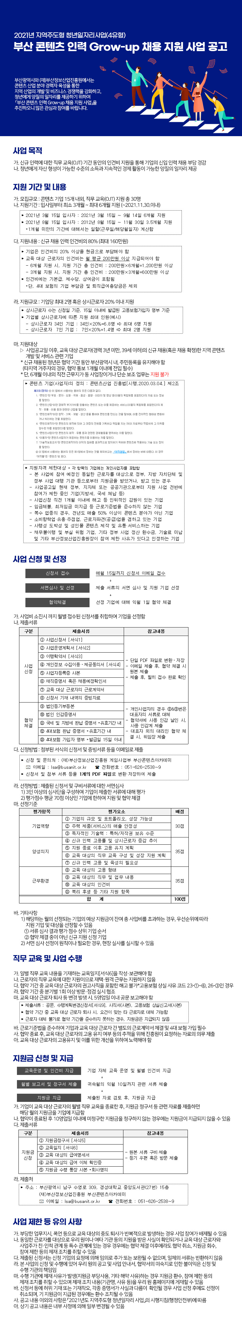 2021 부산 콘텐츠 인력 Grow-up 채용 지원 사업 공고문 및 서식.hwp