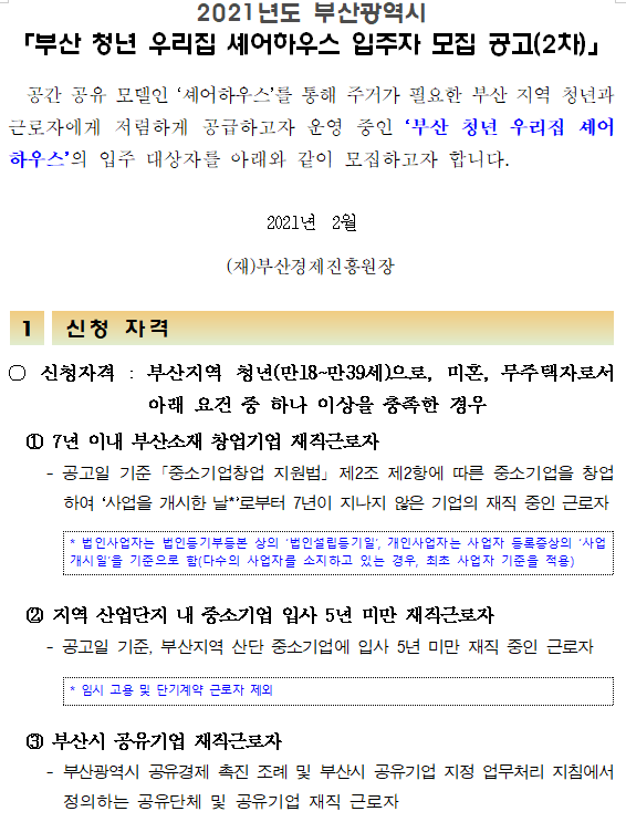 [공고문] 부산청년 우리집 셰어하우스 입주자 모집공고(2차).hwp