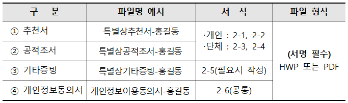 o 특별상 부문 접수방법