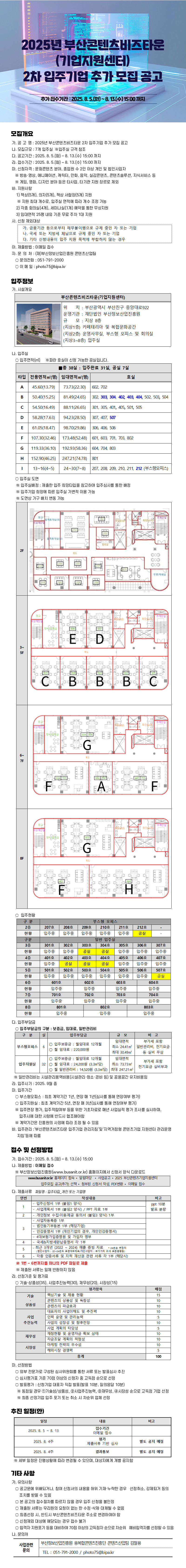 2025 부산콘텐츠비즈타운(기업지원센터) 2차 입주기업 추가 모집 공고.hwp